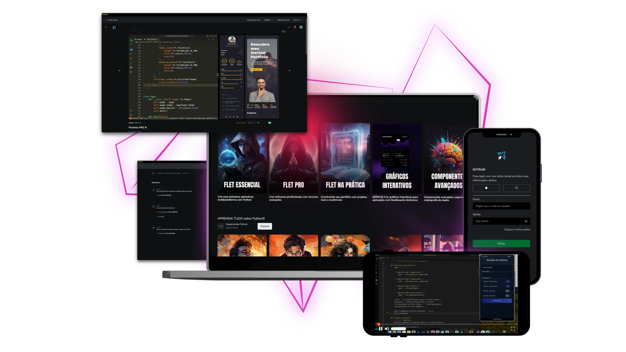 Com o Flet 360 você terá um método testado e validado, focado em projetos reais, desafios práticos e suporte total para garantir que você domine Python de verdade e possa ganhar dinheiro com isso.